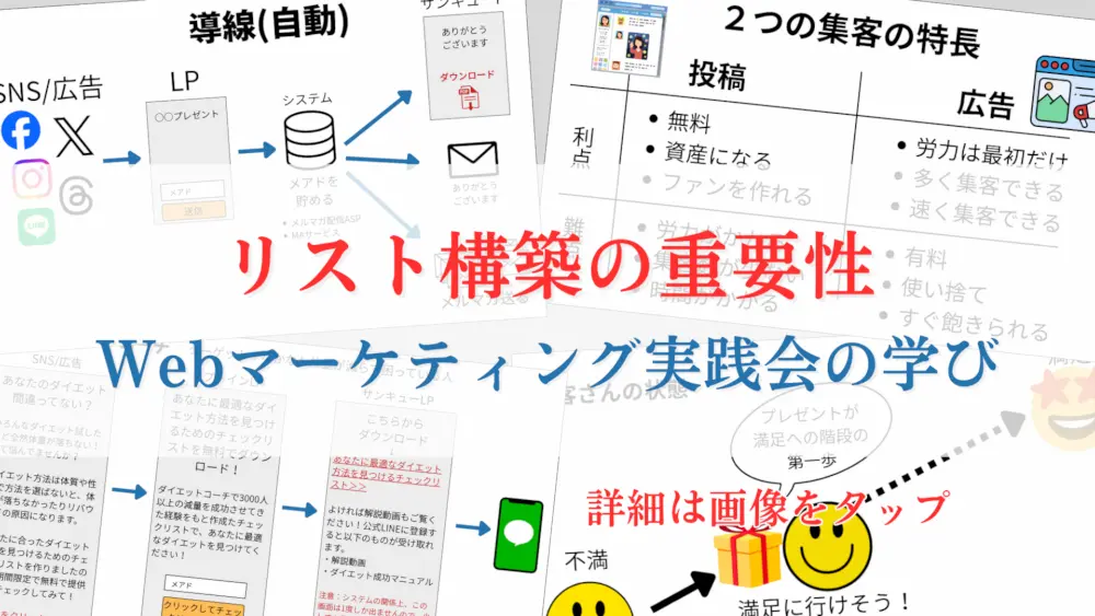 この実践会では、リスト構築の基本的な方法について学んできました。今後はより実践的なワークショップ形式で、実際にリスト構築の仕組みを作っていく予定です。